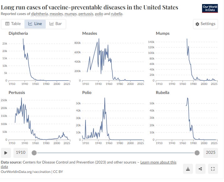 The improvement in our health over the years was not an accident, but was the result in investments in medical research and a commitment to vaccinations. Under the Trump Administration, we are seeing a large cut in medical research and a hostility to vaccination. This, sadly, will ultimately lead to a reduction in our health.