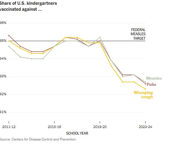 Even worse that this decision has been considered efforts by HHS to limit access to existing vaccines. The delay in approving flu and RSV vaccines for the coming flu season is especially troubling. Usually, an expert FDA advisory group recommends which version of the flu vaccine should be produced based on the current strains, with manufacture of the flu vaccine done over the summer. As Your Local Epidemiologist explains this process is in complete disarray: