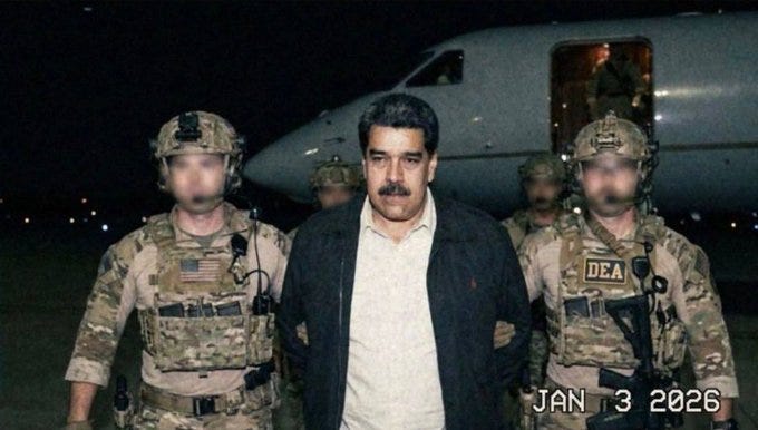 "President Donald Trump quickly took to Truth Social to announce, “The United States of America has successfully carried out a large scale strike against Venezuela and its leader, President Nicolas Maduro, who has been, along with his wife, captured and flown out of the country." (https://www.justsecurity.org/127981/international-law-venezuela-maduro/)