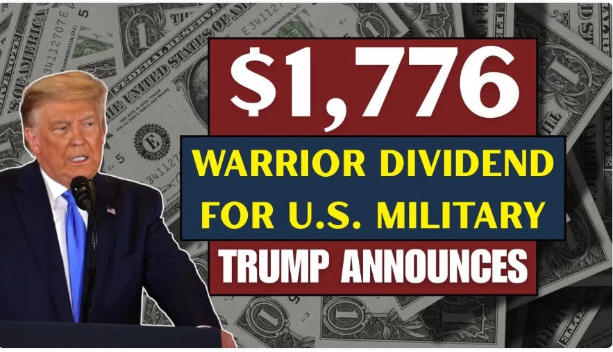 It turns out that the Warrior Dividend is nothing more than a rebranding of money that servicemembers were already going to receive. So yes, the dividend appears to be legal, but it is also a deceptive move by Trump to take credits for what Congress has already approved.